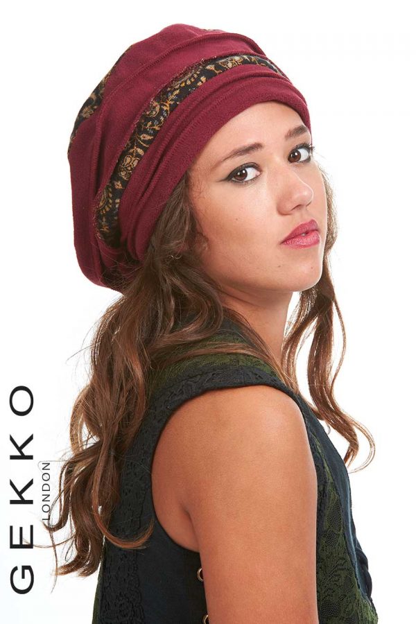 Ribbed round hat made of fleece and shawl fabric.