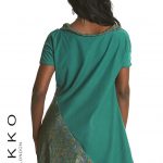 Cotton lycra and new sari fabric wide top with uneven hem.